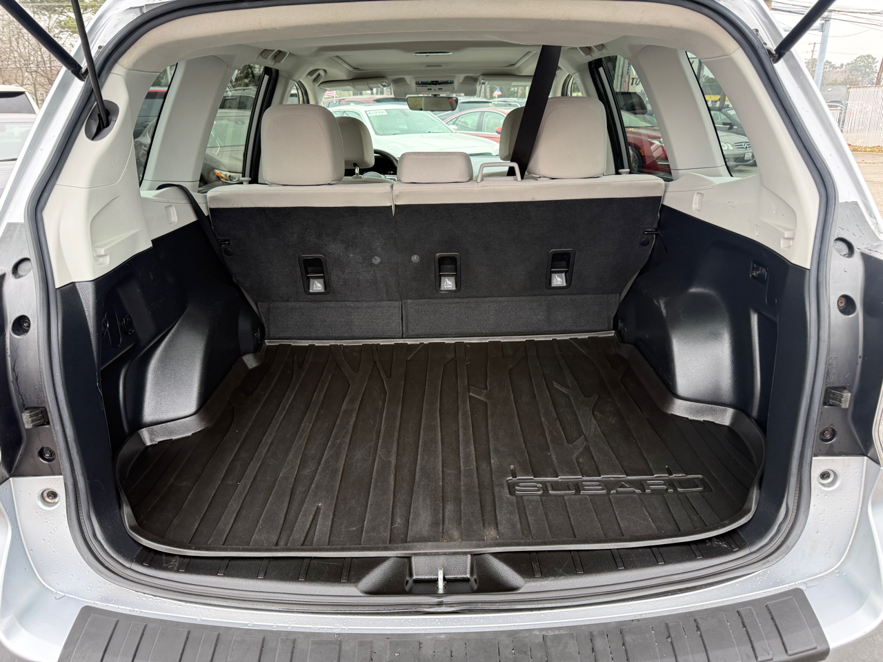 Factory Subaru rubber floor mats all throughout SUV with cargo mat