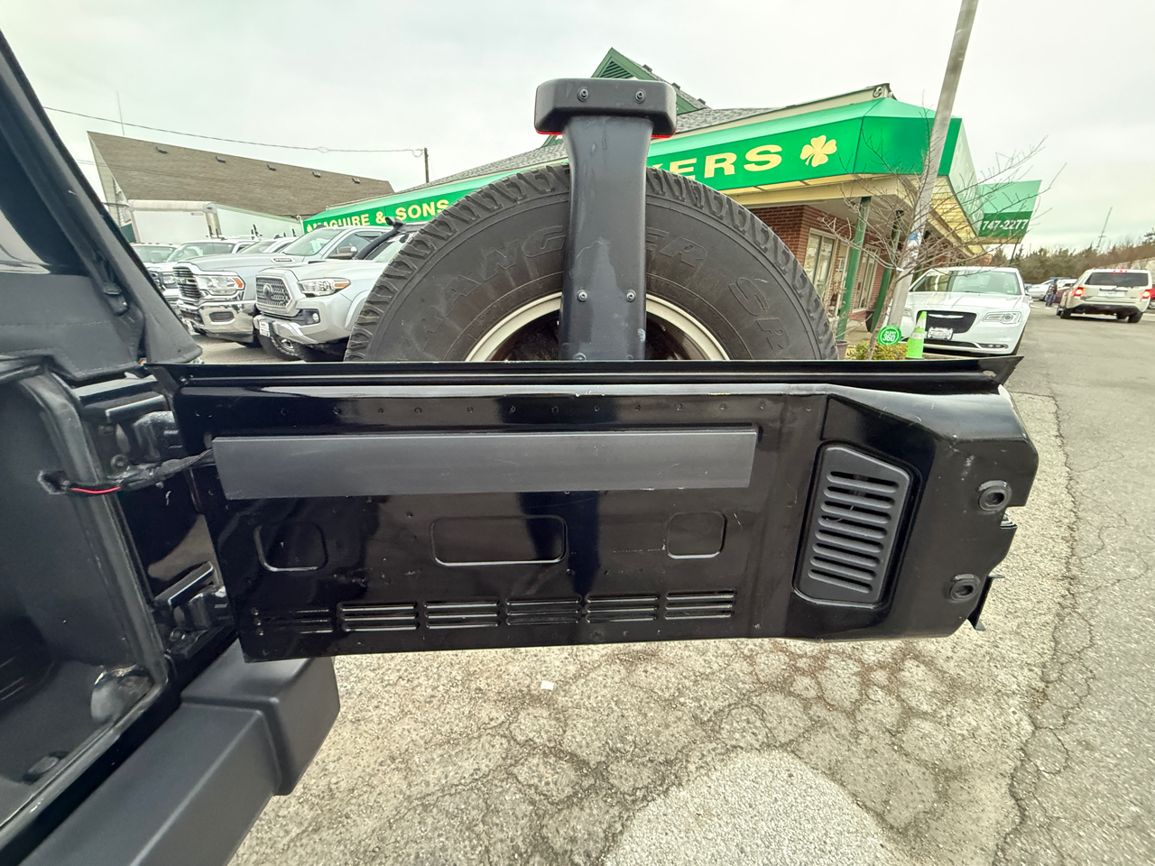 Rear swing-out cargo door with full-size spare tire mounted